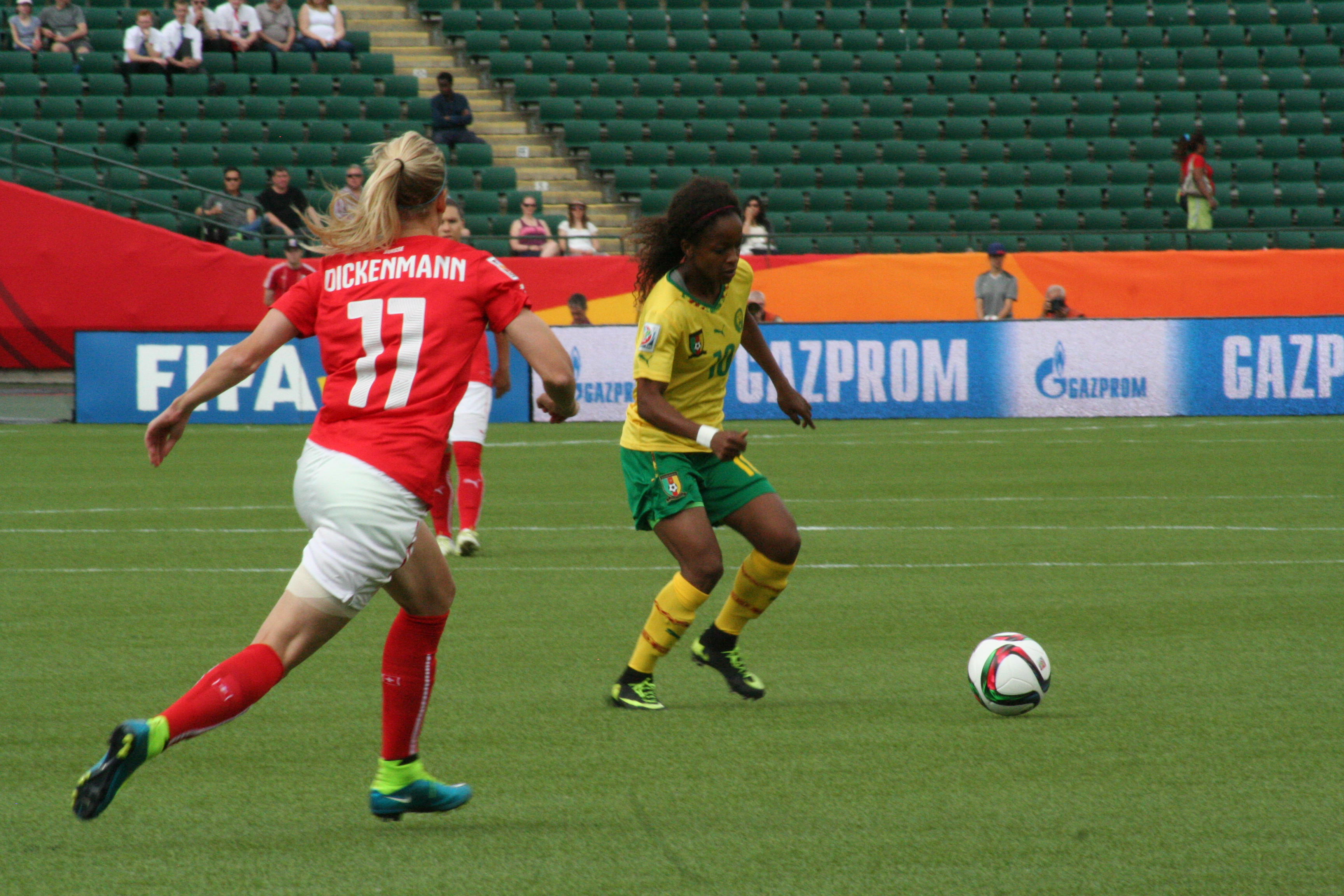 Al minuto 62, Gabrielle Onguene bailo a defensa Suiza por el costado derecho, se metió al área y Madeleine NGONO Mani que había ingresado al minuto 57 anoto el 1-2 para darle la vuelta en el marcador.