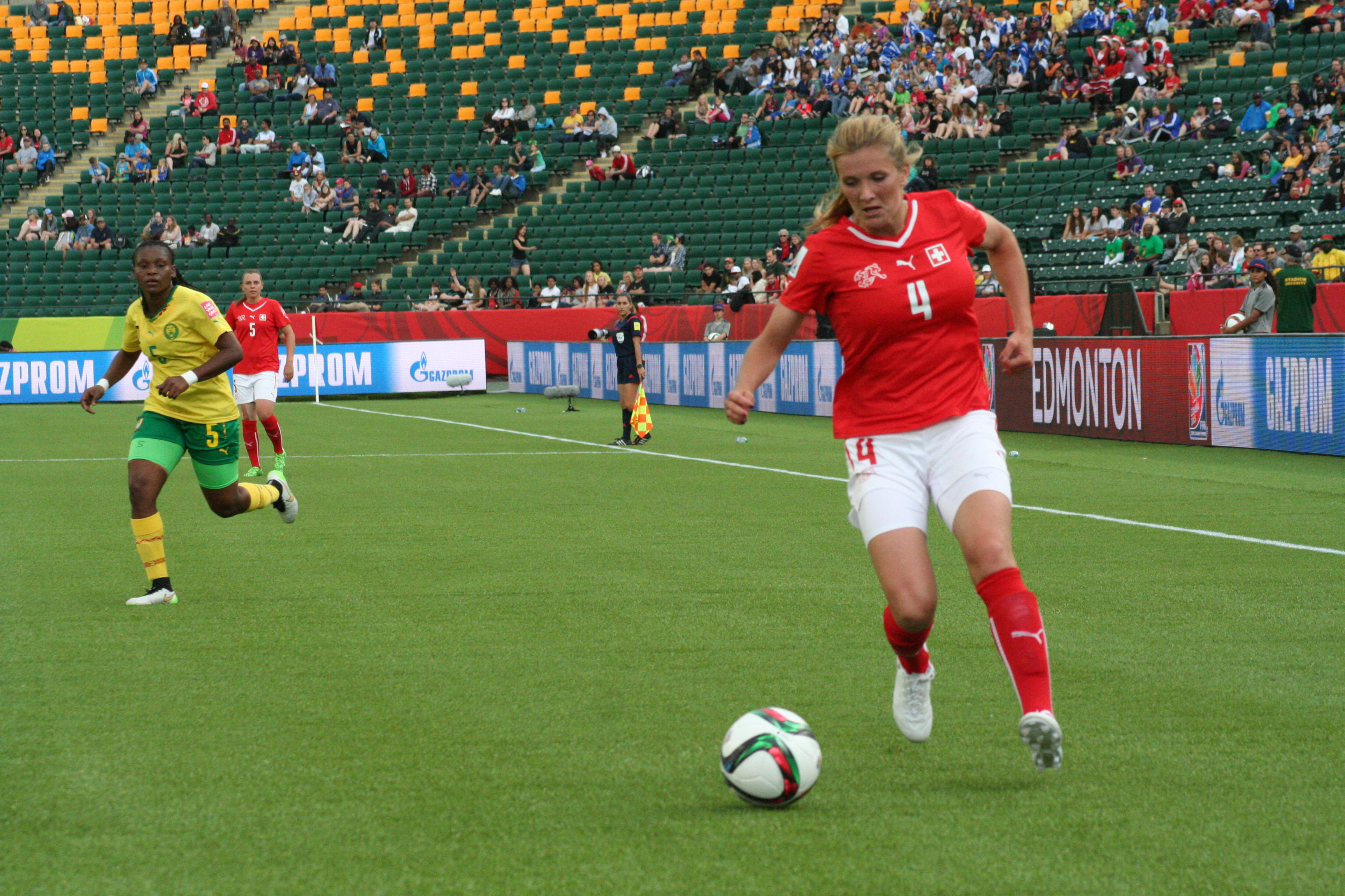 Pero al 24, Ana María CRNOGORCEVIC aprovecho las facilidades de la defensa Camerunés, y con un disparo rasó al aras del césped marco el 1-0 a favor de Suiza.