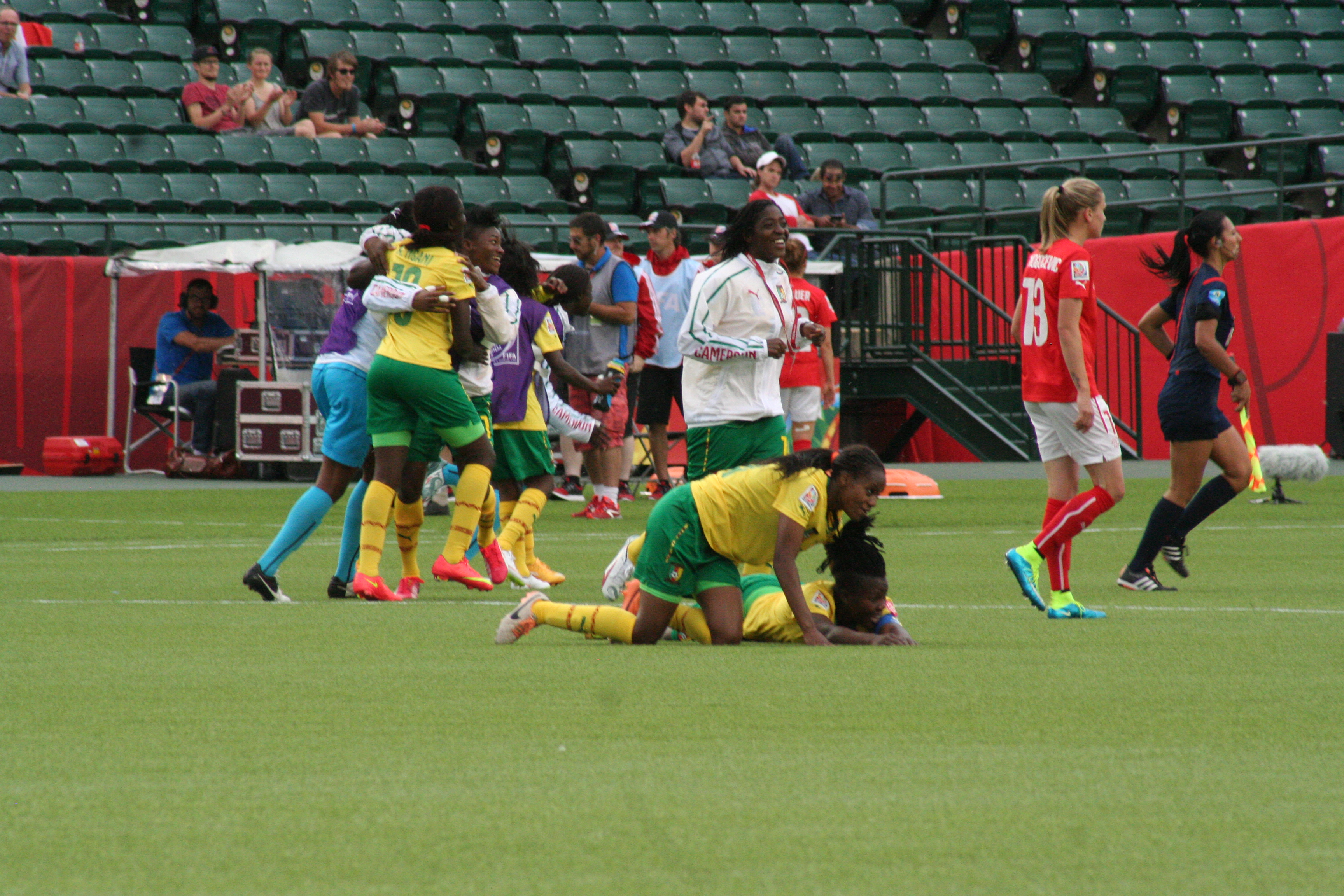 Histórico, La selección de Camerún avanzo a los Octavos de Final del Mundial Femenino en Canadá 2015 por primera vez en su historia tras derrota a Suiza 1-2 en 95 minutos.
