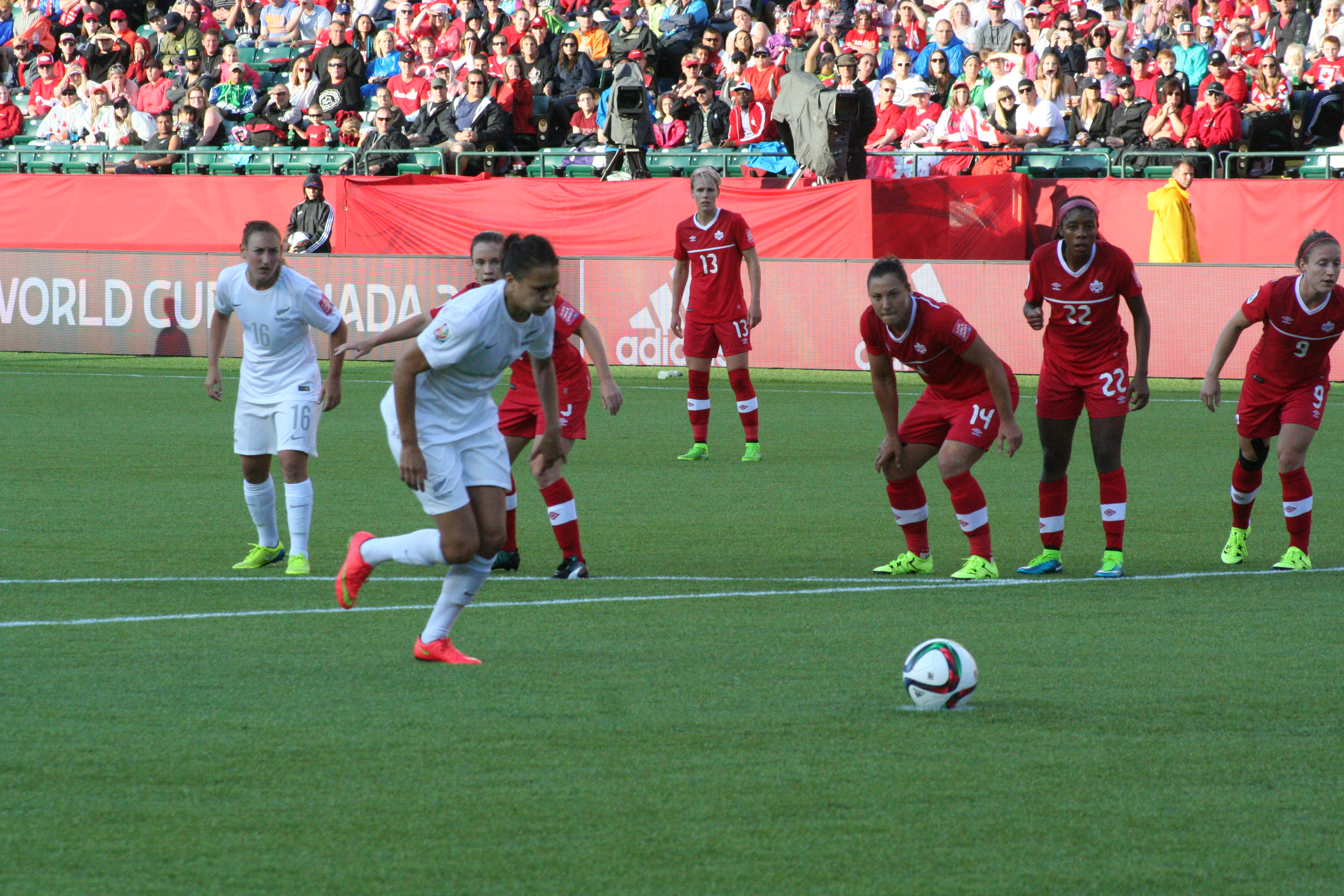 Nueva Zelanda tuvo la oportunidad más clara de gol al minuto 30 cuando Amber Hearn boto un penal para las Kiwis, donde su disparo pego en el travesaño cual hubiera sido el 0-1 a favor de las Nueva Zelandesas.