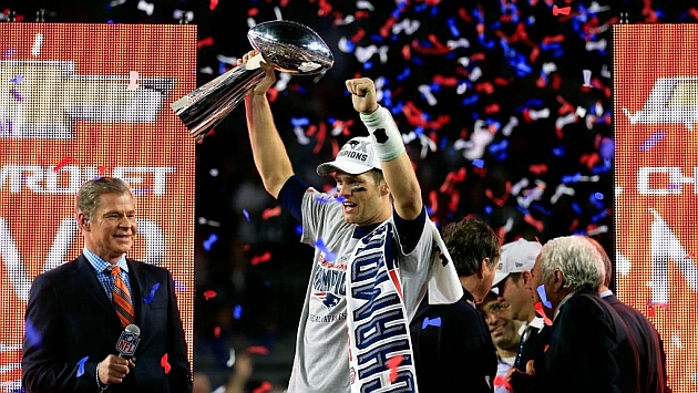 Por Roberto Canario Foto Cortesia Marcaplus.com Glendale Arizona 02-01-15 Tom Brady levantó el máximo trofeo del fútbol americano tras ser el protagonista de la victoria de Los Patriots de Nueva Inglaterra que se proclamaron los nuevos campeones del Super Bowl…