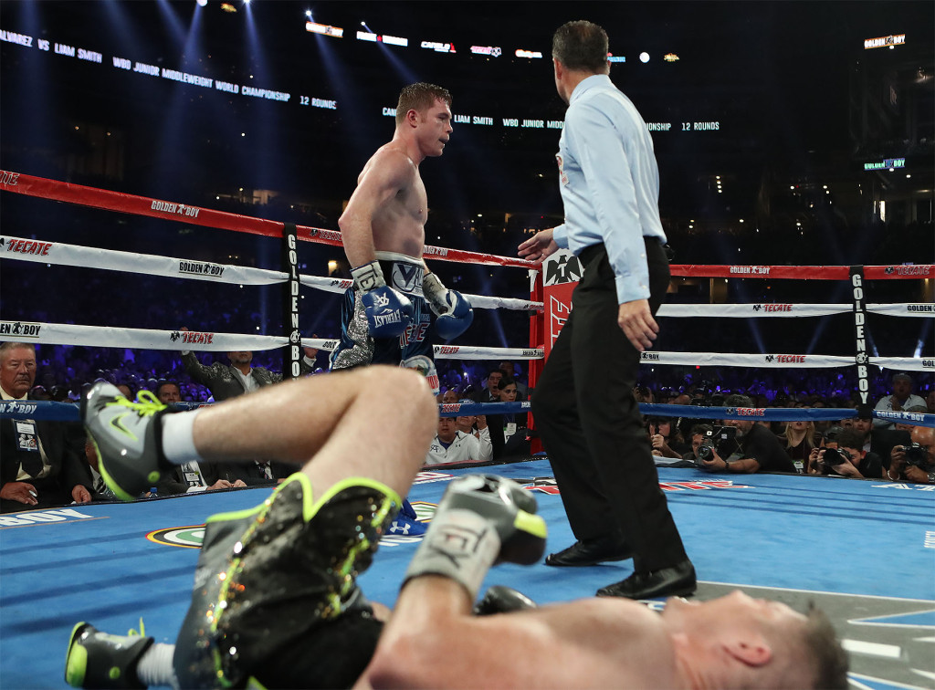 Saúl “El Canelo” Álvarez noqueo a Liam Smith en el Noveno round y se quedo con el titulo de la Superwelter de la OMB.