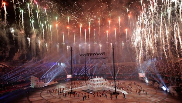 Tras ello, el espectáculo lo cerró el cantante puertorriqueño Ricky Martin, quien puso de pie al público e hizo bailar otra vez a los deportistas en el estadio.