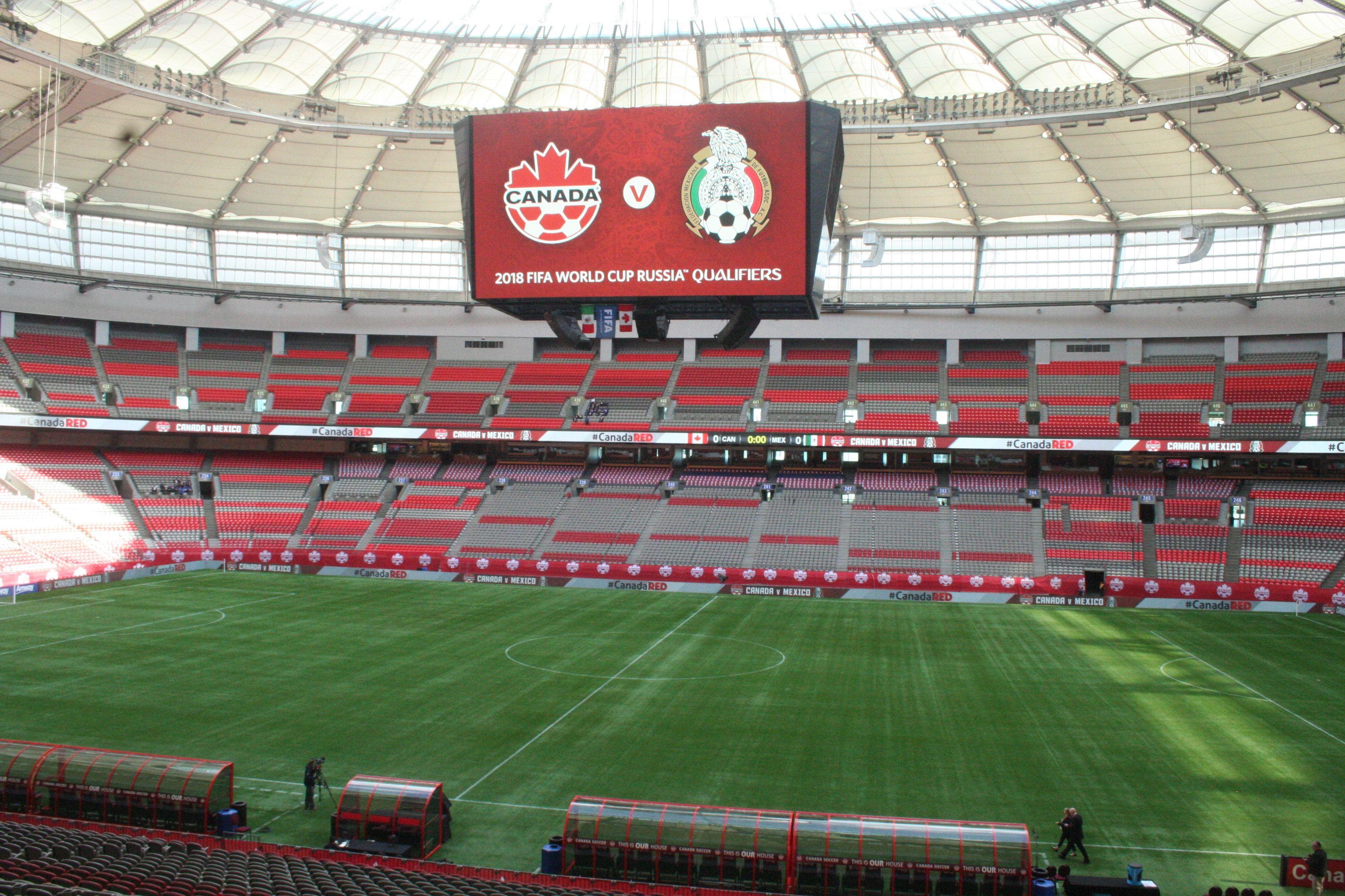 Gran ambiente el que se vive ya en el BC Place de Vancouver previo al juego de las Seleciones de Canada vs Mexico, las dos Escuadras hacen ya calentamiento en la Cancha.