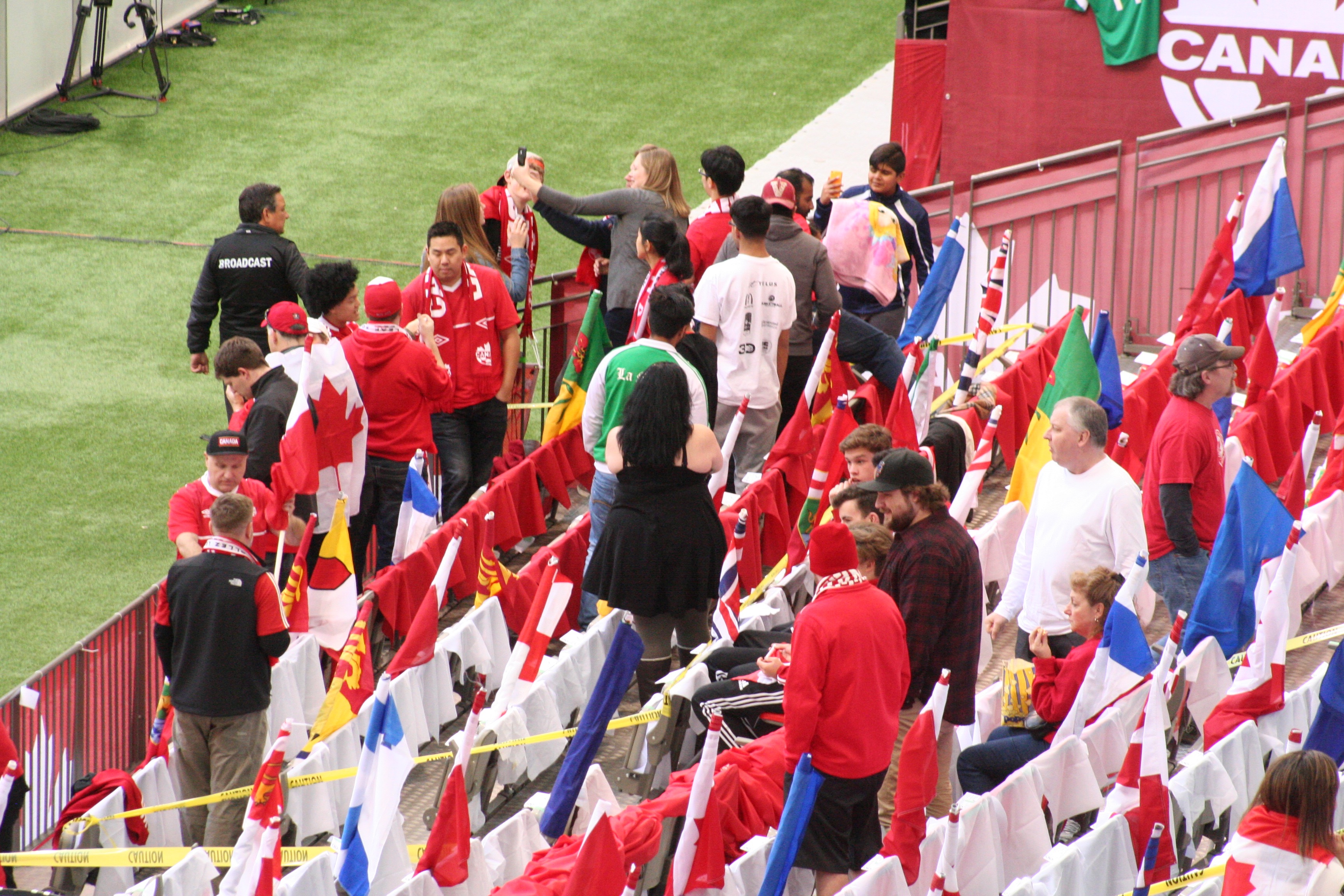 Cada vez mas cerca del encuentro Canada vs Mexico,ya las dos Selecciones se van a los vestidores para regresar ya para el partido y  jugar los primeros 45 minutos.El aficionado lo disfruta tanto el Canadiense como el Mexicano.
