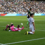 Minuto 20 se salvo Galaxy ya que en un saque de manos ni Dempsey, ni tampoco Martins pudieron darle el toque final para introducir ese balon en la meta Galactica.