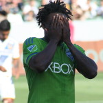 Minuto 67 Pendo de nuevo salva su meta al quitare el balon de los pies al jugador  Andy rose que se perfilaba  a anotar el empate para Seattle.