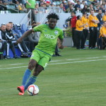 Minuto 34 tarjeta amarilla para el jugador de Seattle Sounders Obafemi Martins.