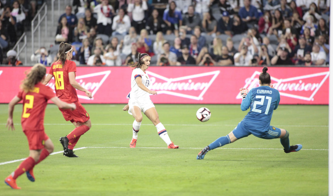 El equipo femenino de Estados Unidos se mira mas y mas listo para proteger su título como ganadores mundiales. El equipo de las barras y las estrellas goleó a Bélgica por un marcador contundente de 6-0 en el Banc of California Stadium en Los Angeles, California.