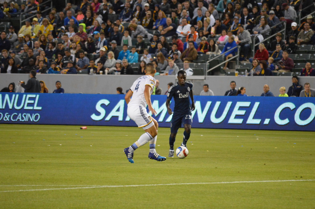 En el minuto 19 el Cuadro de Vancouver elevoro la primera jugada de peligro cuando por la punta izquierda se metió el jugador Gershon Koffie que se dirigió al arco de Brian Rowe pero el Meta Galactico valiente le salio a tapar y asi le quito la oportunidad de gol al equipo visitante,y en el contra golpe el jugador Cristian Techera cometio una falta sobre Baggio Husidic y el Arbitro le mostro el primer carton amarillo.