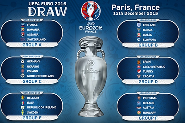 El país anfitrión Francia. esta ubicado en el Grupo A junto Rumania, Albania, y Suiza. Los Galos abrirá el torneo el 10 de Junio en la sede de Saint-Denis ante Rumania.